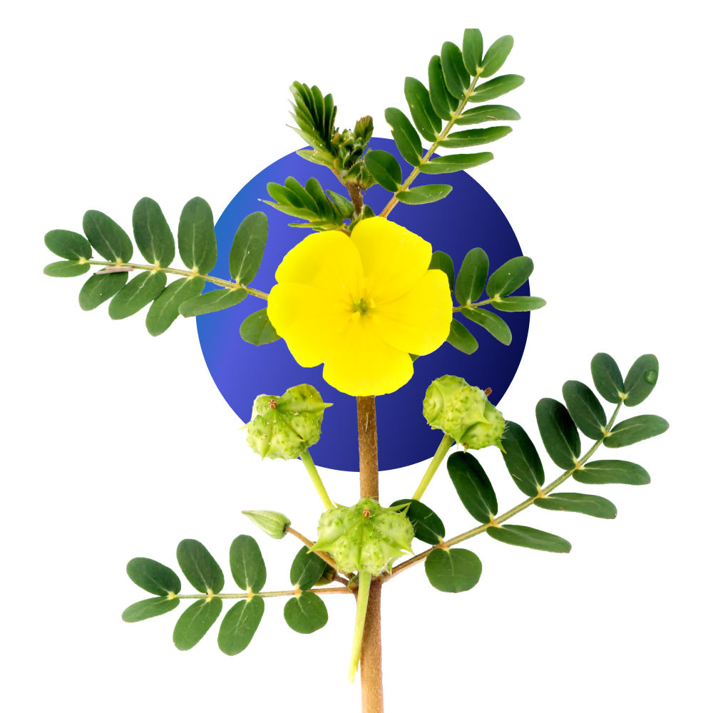 Il tribolo comune (Tribulus terrestris), noto anche come gokshura in sanscrito, è una pianta ayurvedica conosciuta in tutto il mondo per le sue eccezionali proprietà. Si riconosce per i suoi piccoli fiori gialli e spine, motivo per cui talvolta viene chiamato anche vite puntura.